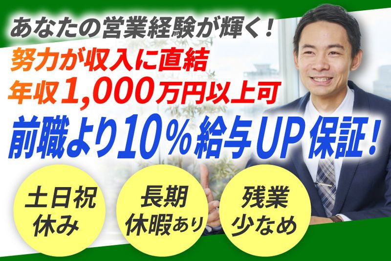 【応募資格】 【成果で掴む年収1,000万円。】 人より考える。動く。...