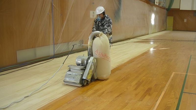 現場のサポートスタッフ 体育館のフロア施工など