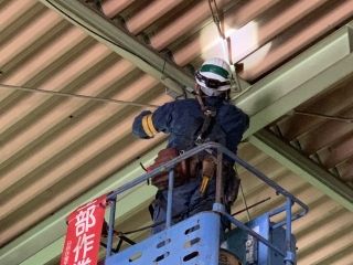 工場内での電気工事作業スタッフ