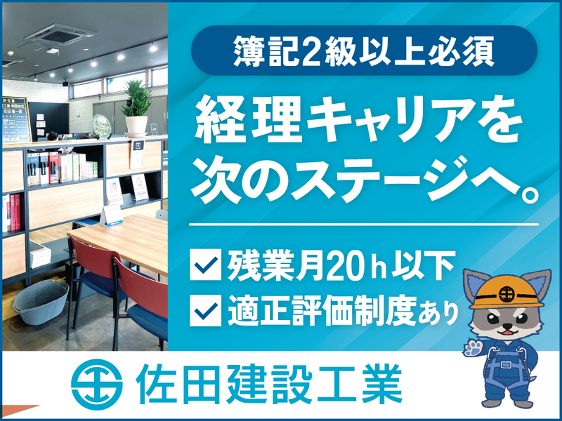 佐田建設工業有限会社簿記2級以上・経験者(3年以上)|前職給与考慮*賞与年2回