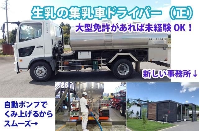 行方運送㈱生乳のルート集荷 ドライバー 大型免許があれば未経験歓迎 手積み手おろしなく50代60代も活躍中◎