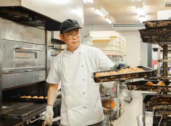焼き立てパンの製造スタッフ