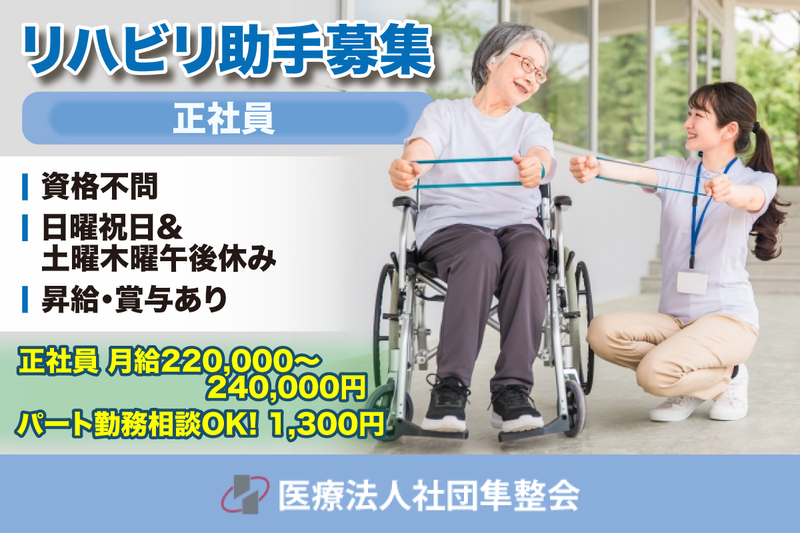 求める人材: 【下記資格をお持ちの方】 ・理学療法士 ・普通免許