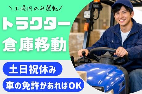 トラクターを運転して倉庫内へ搬入(普通自動車免許でOK/正社員登用有)