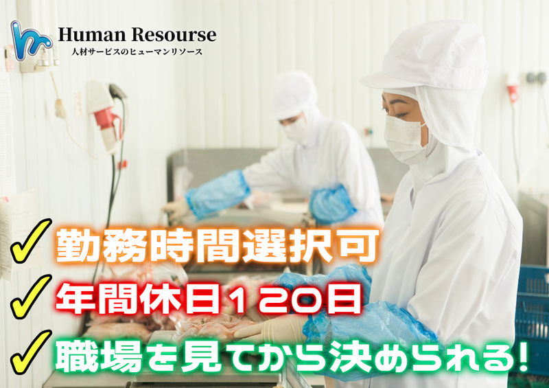 株式会社ヒューマンリソース日勤のみ◎選べる短時間勤務!食品加工工場でのシンプル作業