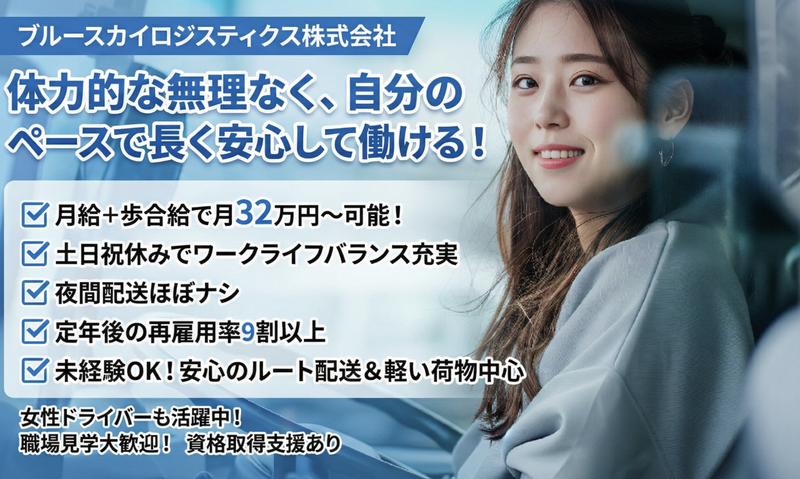 ブルースカイロジスティクス株式会社普免で月収30万以上!30代~50代活躍中/未経験スタート可