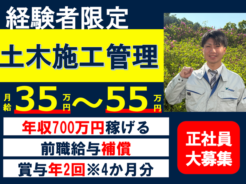 応募条件 1級土木施工管理技士 土木施工管理の実務経験をお持ちの方ご...