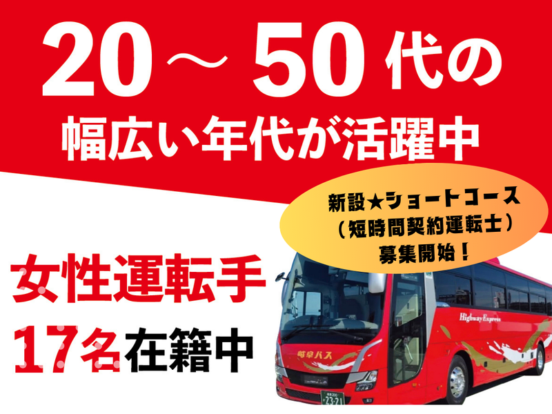岐阜乗合自動車株式会社週3日で月収14万円以上可能!1日2時間~、週2日~OK!