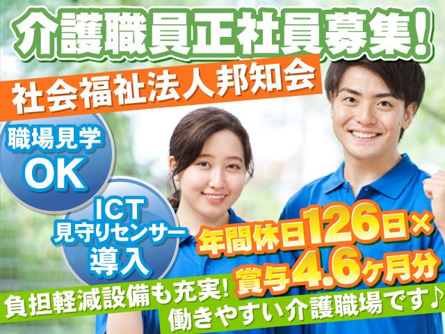 社会福祉法人 邦知会正社員/年間休日126日/賞与4.6ヶ月分/負担軽減設備も充実した働きやすい介護職場です