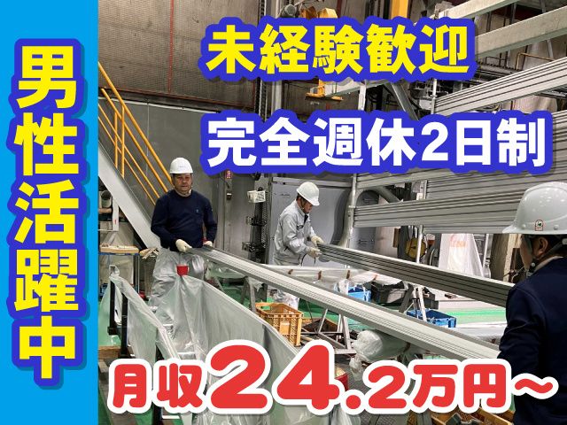 有限会社平成アルミ正社員募集、未経験でも月給24万円スタート 男性活躍中 土日祝休み、、昇給賞与もあり