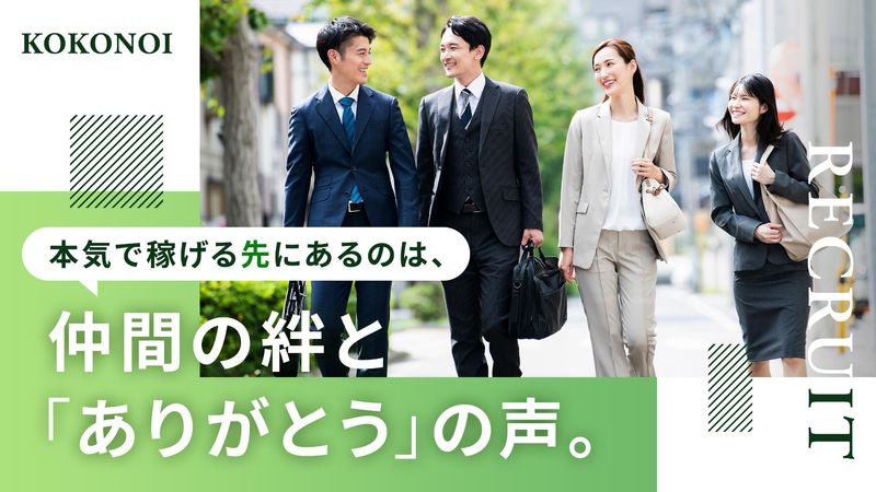 株式会社ここのい【未経験者歓迎】土日休み×子育て世代活躍中〇インセンティブ&報奨金で収入グンとUP!