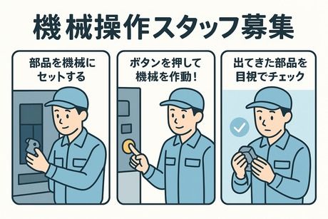 株式会社ヒューマンアイズ\出勤して、手当を貰おう!/ 部品をセットしたらボタンを押すだけ! 【未経験OK!*軽作業*土日休...