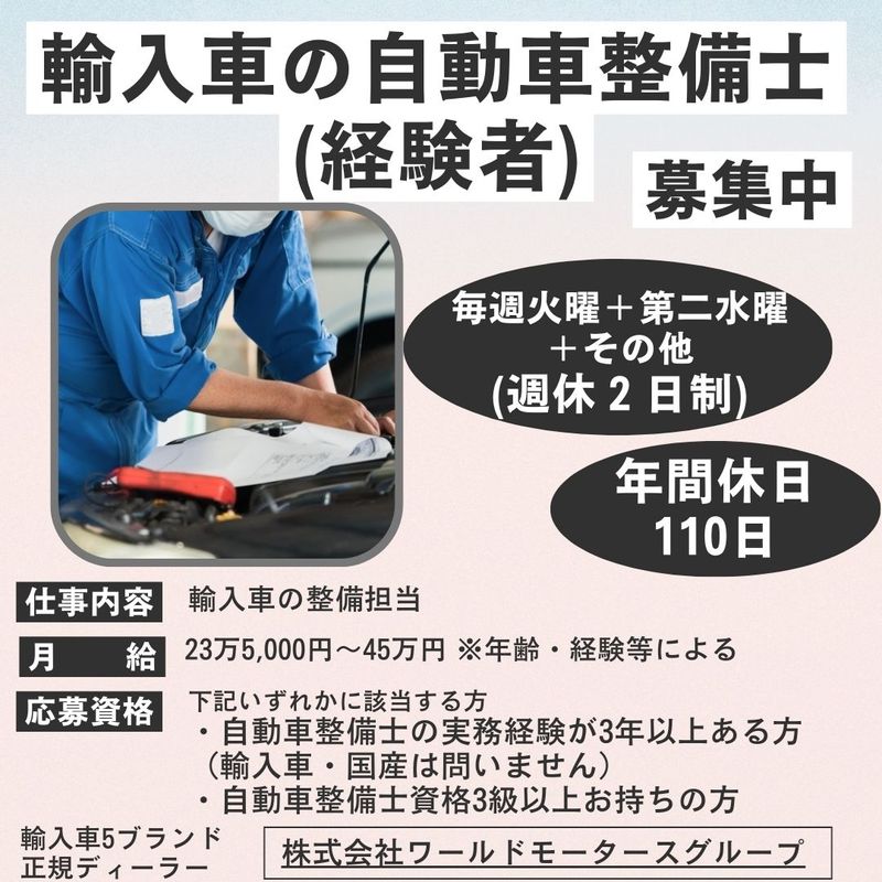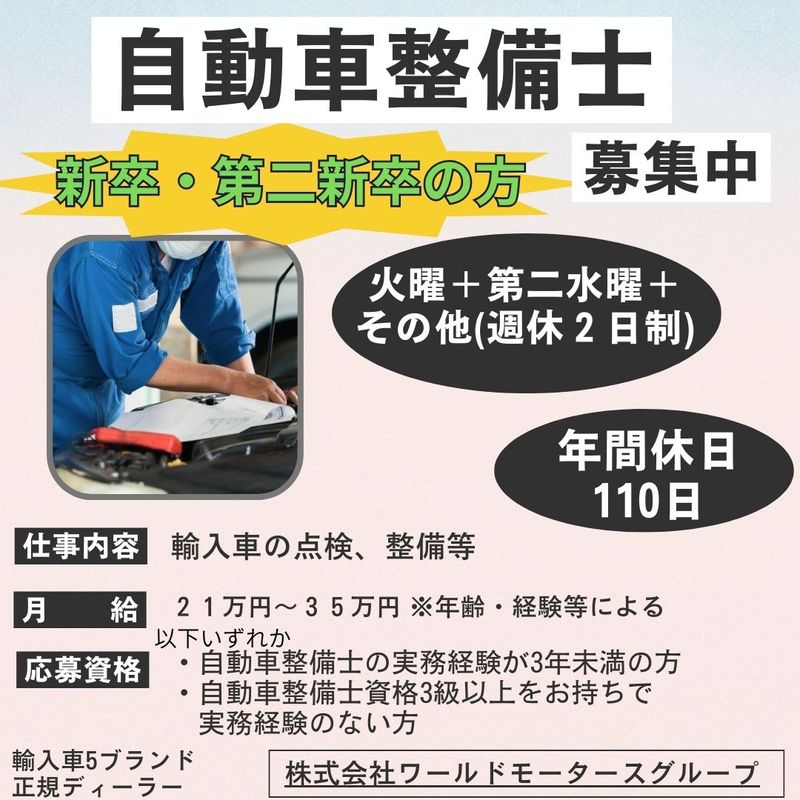 広島県、整備士(道路交通/陸運)、既卒歓迎の転職・求人情報