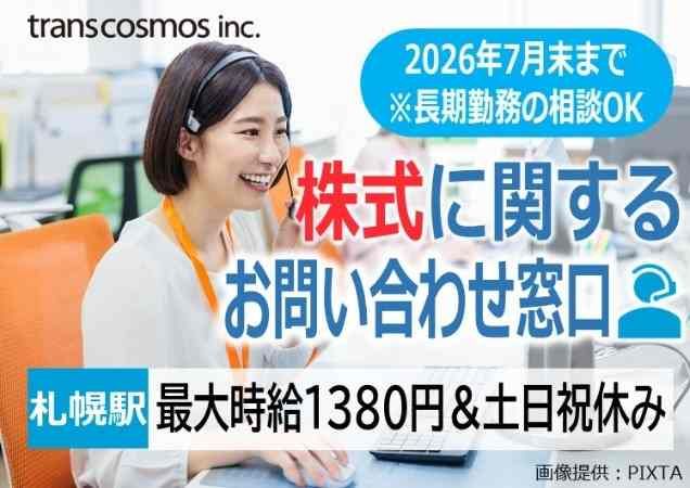 トランスコスモス株式会社【7月末迄の期間限定】土日祝休み!株式等に関するお問い合わせ対応【札幌駅】