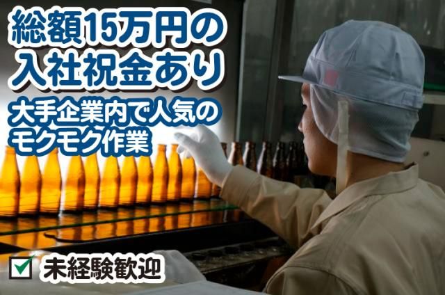 三晃商事株式会社播磨町【大手ガラスびん企業での請負業務(座り仕事)】正社員/未経験OK/入社祝い金あり/昼食補助あり