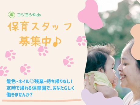 コツヨシ株式会社オープニング保育(パート)募集!未経験OK・定時で帰れる小規模園◎/一緒に”理想の保育園”をつくっ...