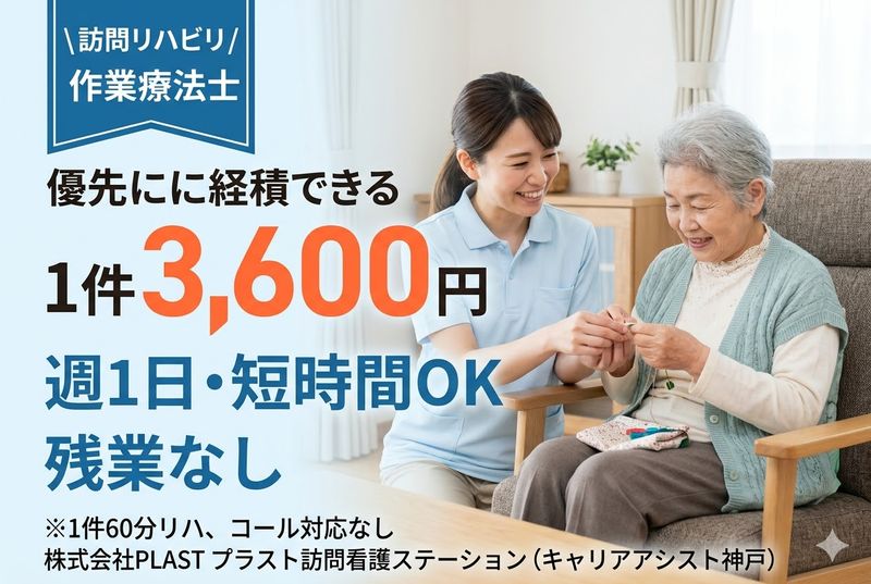 株式会社 ビオネスト訪問看護ステーション笑楽 三宮/訪問リハビリ 作業療法士/未経験者活躍中!年間休日120日!5連休...