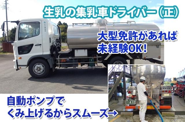 行方運送㈱生乳のルート集荷 大型免許があれば未経験OK・経験者歓迎! 手積み手おろしなく50代60代も活躍中◎