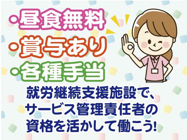 有限会社大裕就労継続支援施設で働こう サービス管理責任者募集中! 転職希望者もOK/賞与あり/昼食無料