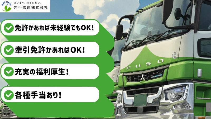 岩手雪運株式会社牽引免許活かせます/未経験の方でも応募OK/資格取得支援◎