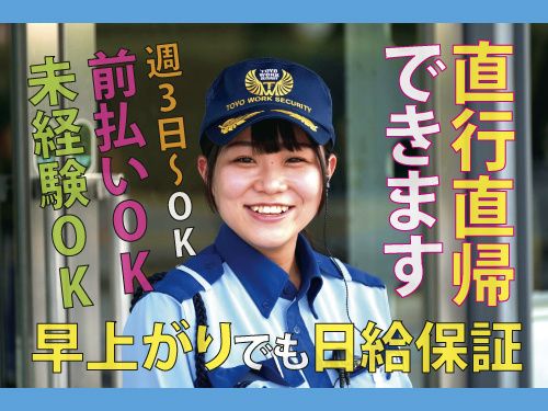 東洋ワークセキュリティ株式会社早上がりでも日給保証! キャリアアップ制度もあり! 18歳~70代まで年齢・経験問わず活躍できます!