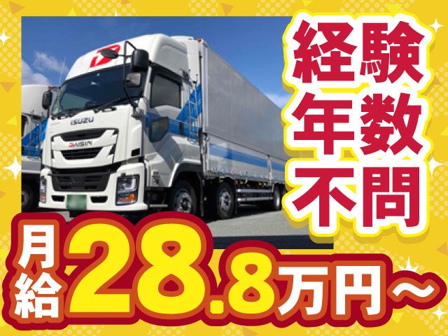 ダイシン物流株式会社<長距離運行なし!毎日家に帰れる>日勤専属/横乗り研修あり/昇給年1回・賞与年2回/土日祝休み