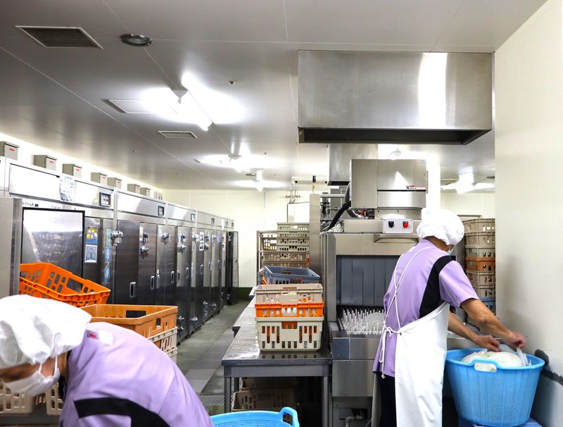 北里大学病院内での食器洗浄
