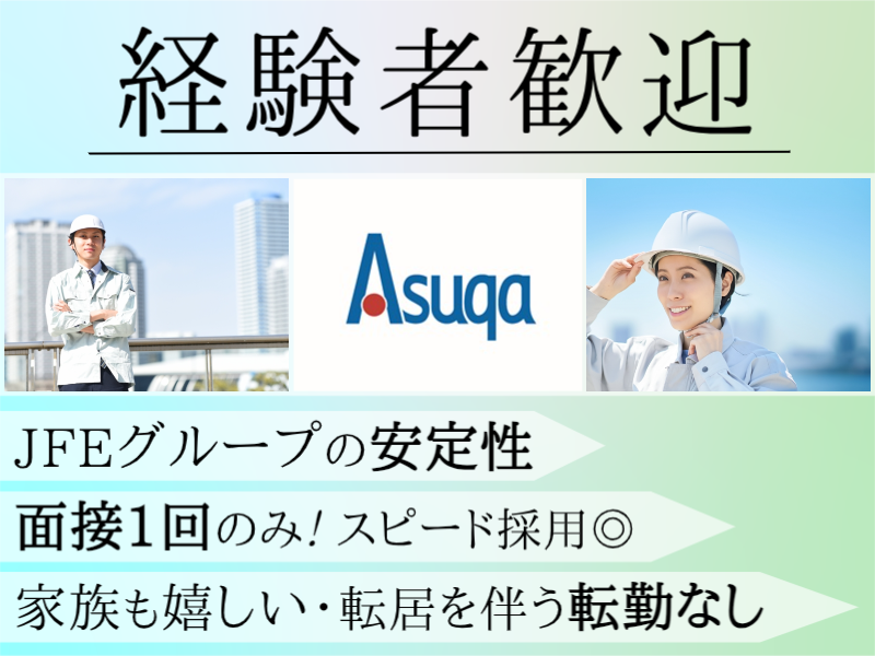 あすか創建株式会社JFEグループ/面接1回・スピード採用!転居を伴う転勤なし