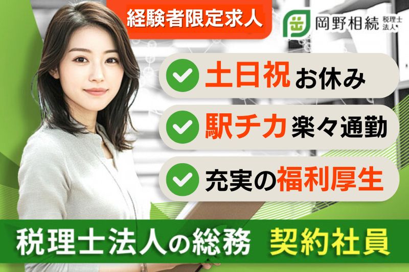 岡野相続税理士法人■総務契約社員■女性スタッフ活躍中/完全週休2日制/年休122日/有給消化率・産休復帰率100%