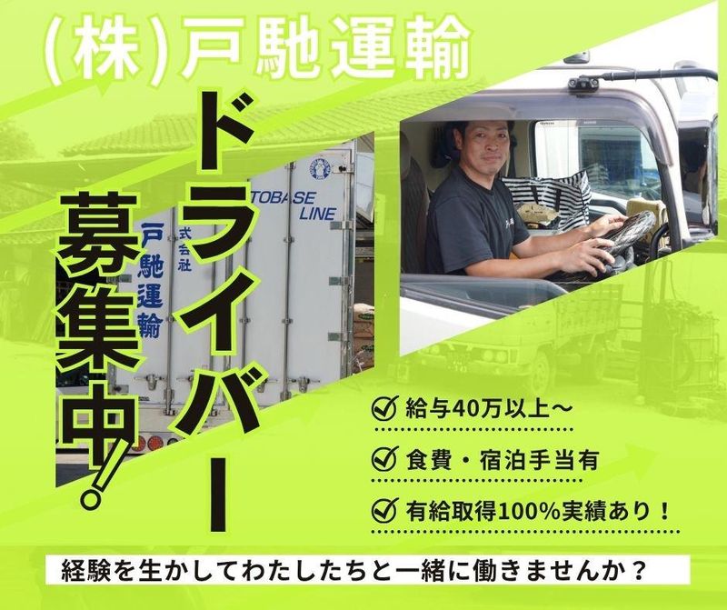 株式会社戸馳運輸免許取得全額支援/研修後は月40万~、将来は月収60万も