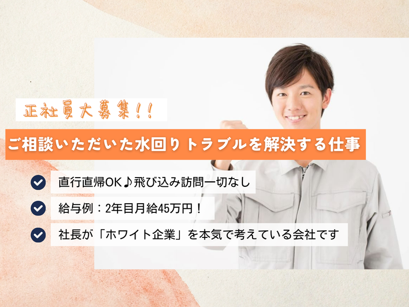 くまもと水道設備株式会社2年目で月給35万円も!スピード昇給◎社用車で直行直帰可♪
