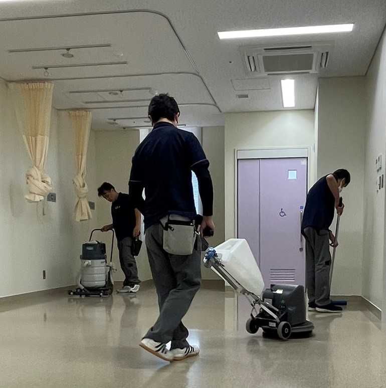 床の洗浄・ワックス掛けの清掃スタッフ