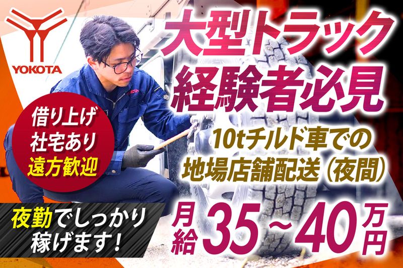 株式会社ヨコタエンタープライズ✅夜間大型ドライバー✅月収約35万円~40万円✅高速道路利用/余裕のある配車✅日帰り運行
