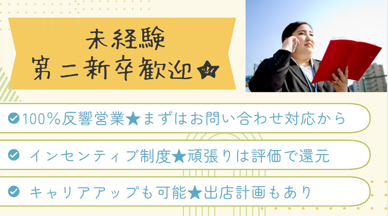 求めている人材 ✅業界未経験OK! ✅第二新卒歓迎! ✅接客経験を活か...