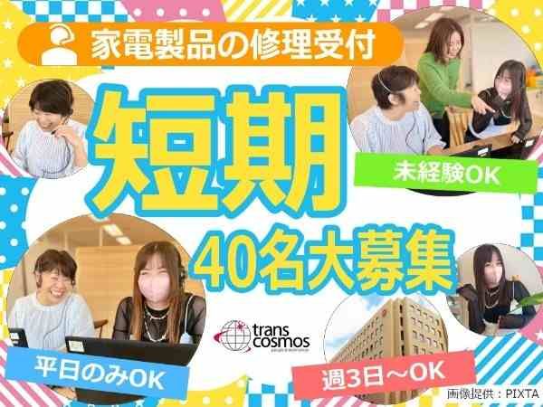 トランスコスモス株式会社【3/3入社】7月末or8月末まで限定★週3~OK!家電修理の電話受付<家電の知識不要>