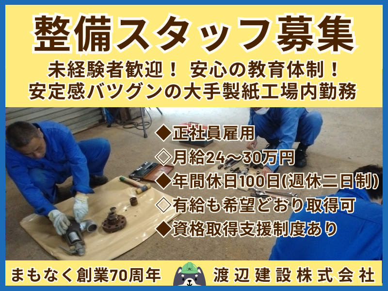 渡辺建設株式会社月給25万円以上可能✨(基本給+現場手当+特別手当)