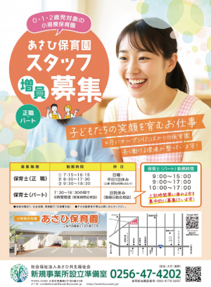株式会社あさひコモンズ2025.4月新規オープンの小規模保育園/勤務時間・曜日は相談可能!日曜祝日休み・0~2歳児、定員...