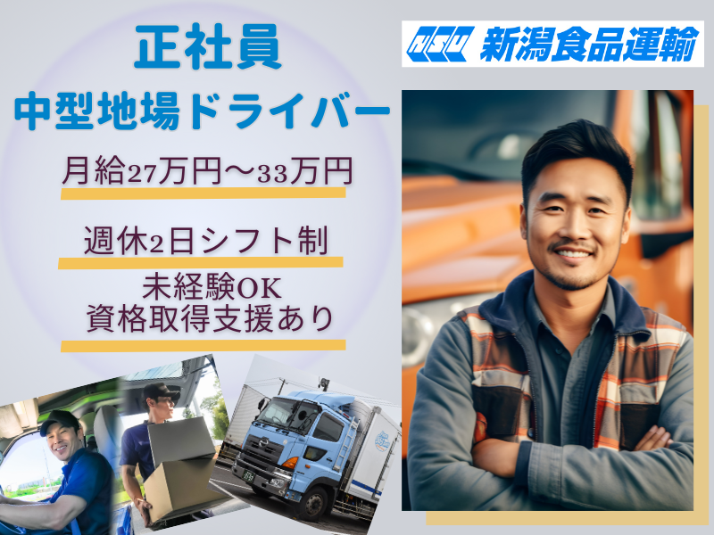 株式会社 新潟食品運輸未経験スタートも応援します!「資格取得支援あり」中型地場ドライバー!嬉しい高収入♬
