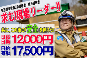 有限会社太陽警備現場リーダー経験者交通2級有資格者急募!日勤1万2000円~ 夜勤1万7500円社用車通勤可週払...
