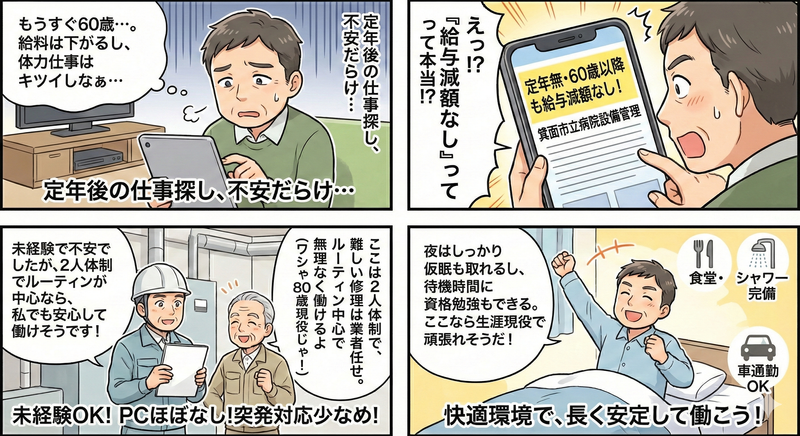 株式会社不動定年無・60歳以降も給与減額なし/夜間対応少なめ・2名体制