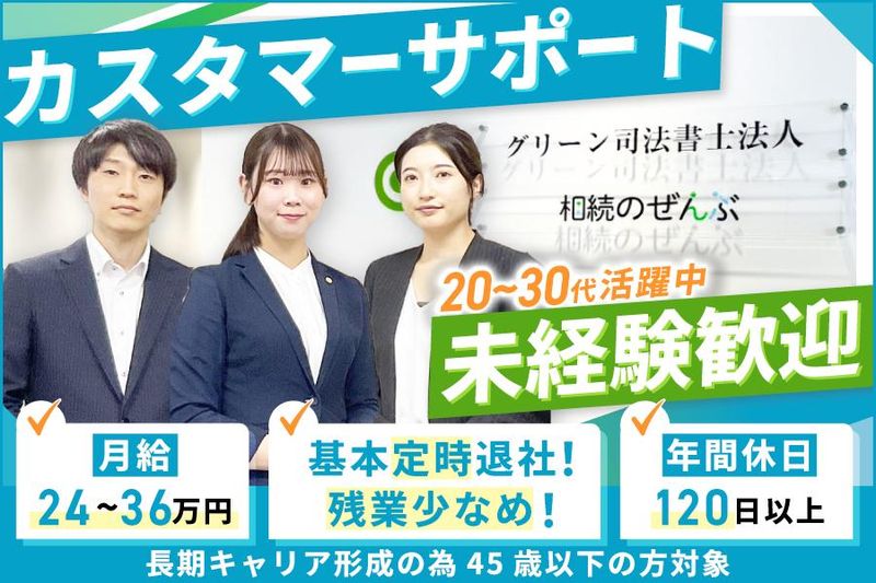 グリーン司法書士法人未経験OK/若手活躍中/年休120日以上/残業ほぼ無し!