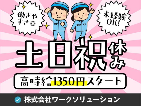 株式会社ワークソリューション接客・人間関係のストレスなし! 機械を見守るだけのモクモク工場ワークで【月収21万円以上】稼げま...