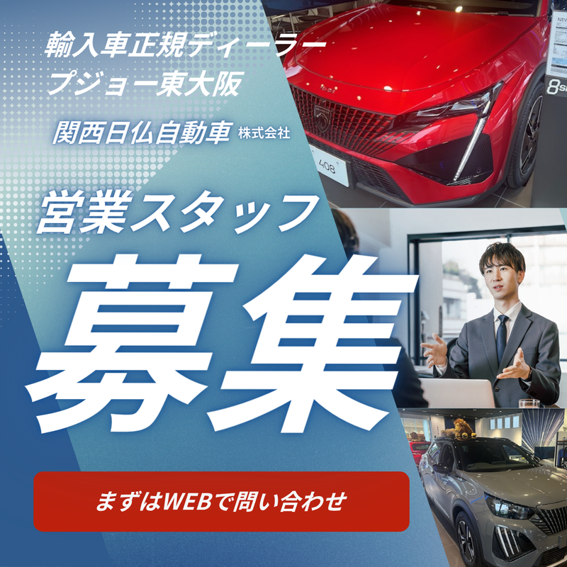 関西日佛自動車株式会社プジョーディーラー◆20代~40代活躍中!車好きな方集まれ!