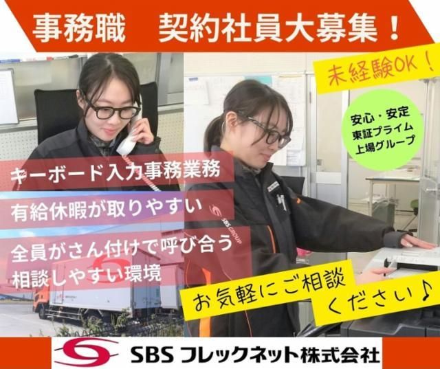 SBSフレックネット株式会社業界大手で安心!物流企業の事務職◎未経験者OK☆有給休暇の取りやすさ◎福利厚生充実