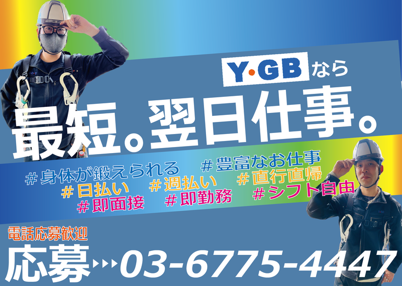 株式会社ワイ・ジービー◆最短翌日から勤務可能◆給与即日払いOK◆履歴書不要◆