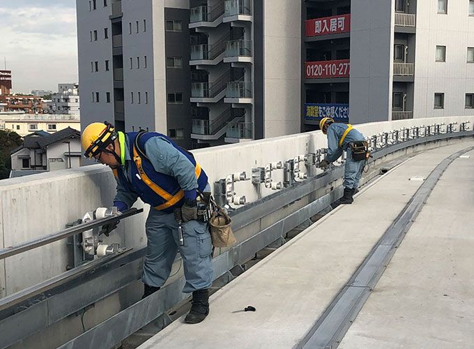電車の架線工事の現場作業スタッフ