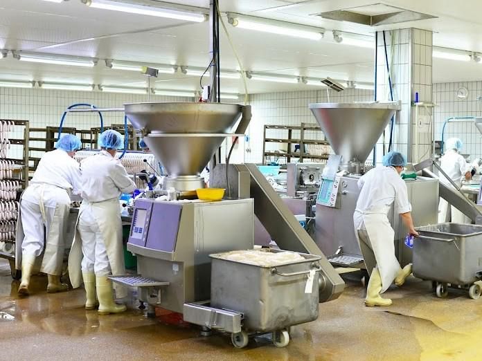 食品製造工場での機器洗浄作業スタッフ