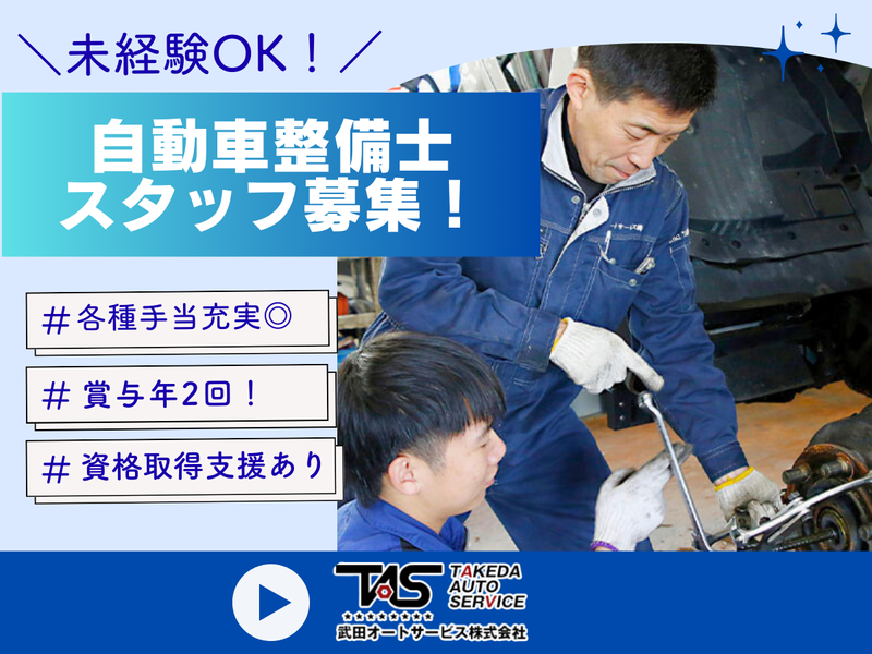 武田オートサービス株式会社未経験OK!月給25万円〜+賞与年2回!各種手当あり◎