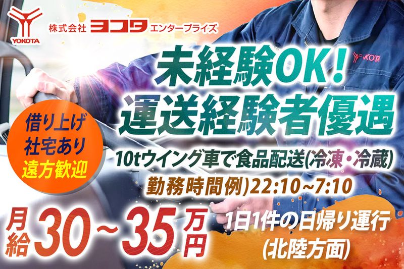 株式会社ヨコタエンタープライズ✅月収約30万円~35万円✅借り上げ社宅あり✅未経験OK✅高速道路利用/余裕ある配車✅安定基盤