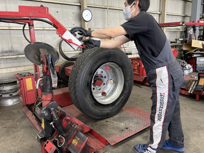 トラックタイヤの交換・着脱スタッフ
